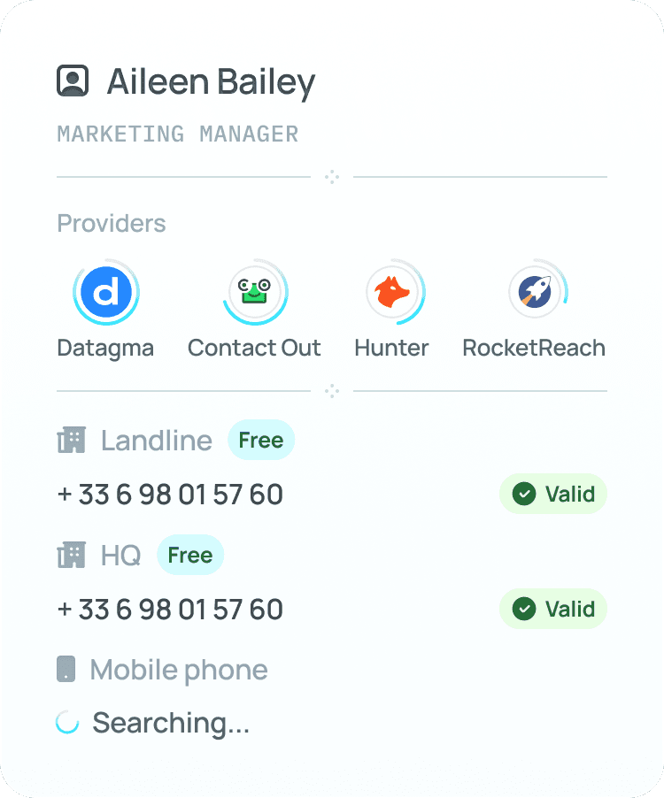 Waterfall enrichment built right in. Import your list, get verified mobile numbers, start calling. No extra tools, no extra steps.
