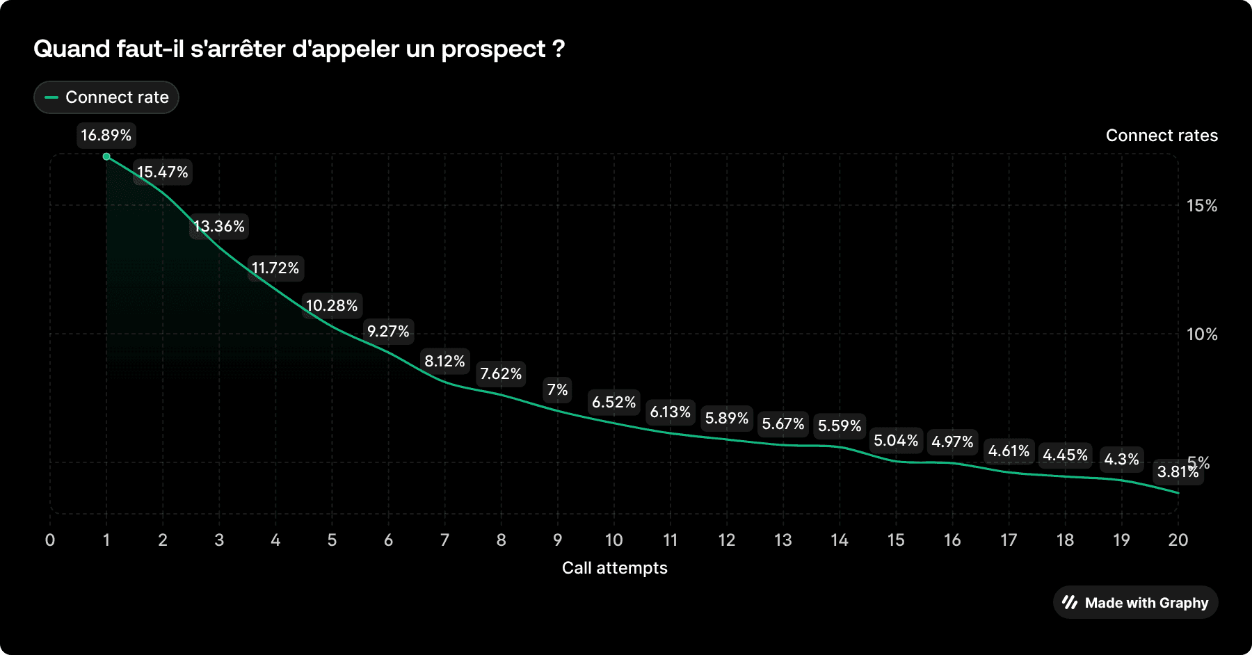 Pourtant, les données montrent une réalité simple : le taux de connect diminue à chaque nouvelle tentative d’appel.